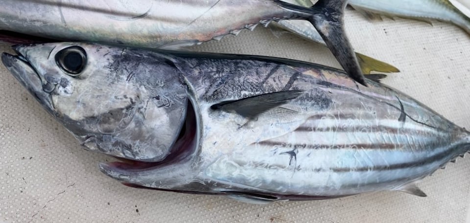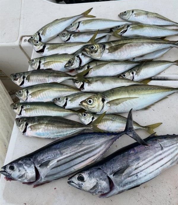 今回はおなじみのマアジ、サバに加え、なんと本ガツオの釣果も!