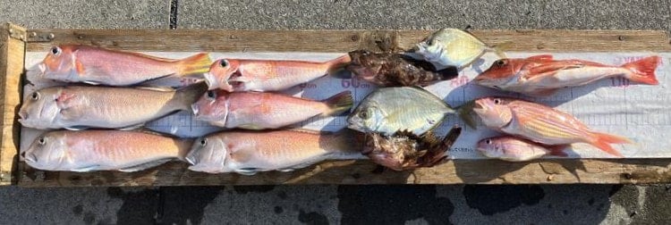釣果は紅白アマダイと大きなイトヨリ、ホウボウ、そしてカイワリにカサゴまで釣れていました。