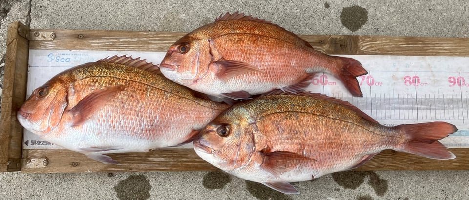 丸々と太った50cmオーバーの良型真鯛をを中心に3枚GET!